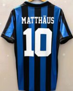 Relive Inter’s glorious past with a dip into the 1989-90 season and the number 10 LOTHAR MATTHAUS jersey. It perfectly encapsulates the values and colours of the Milan club, with the black and blue proudly worn by the phenomenal German midfielder