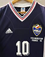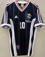 Relive the World Cup in France ’98 thanks to the Yugoslavia jersey with the number 10 of DRAGAN STOJKOVIC. Made for 1998-99 and enriched by the commemorative inscription under the coat of arms, it pays homage to the Balkan national team and its talented captain known for his great technical skills